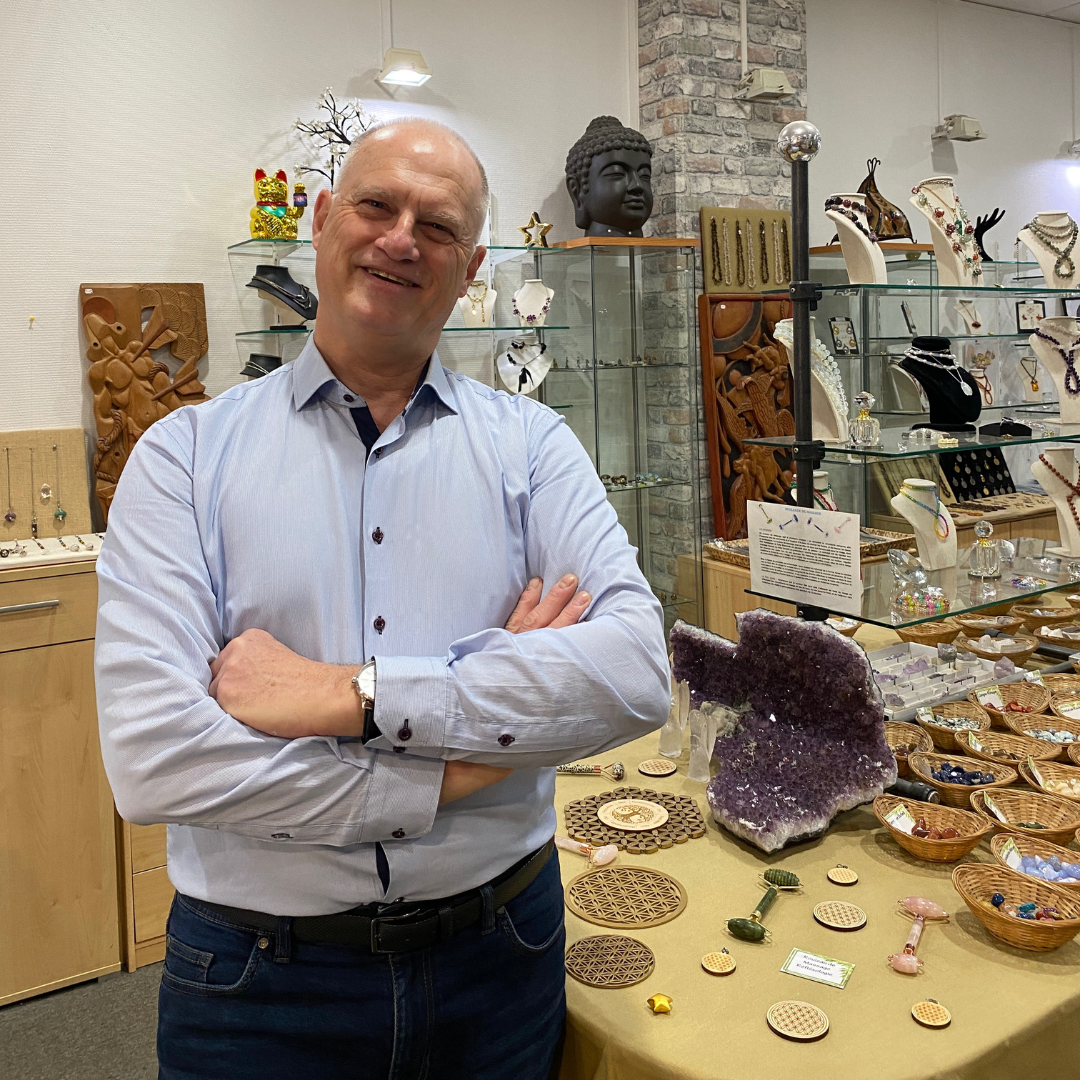 Martial Marquis, créateur de bijoux, a monté sa boutique de pierres il y a 20 ans. Installé dans la Cité artisanale, il vous reçoit avec le sourire et vous conseille.